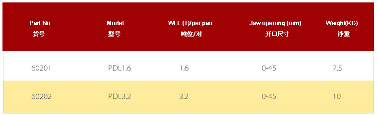 .额定载荷是指吊钳成对使用、吊点夹具为60度时允许起吊的最大重量,吊装作业中两只或4只配套成组使用