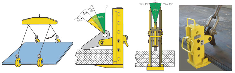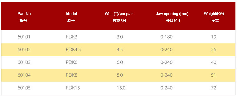.用途:适用于多张钢板的水平吊运.采用优质低碳合金钢制造.吊运过程中不得碰撞被吊物.额定载荷是指吊钳成对使用、吊点夹具为60度时允许起吊的最大重量,吊装作业中两只或4只配套成组使用.可以根据被吊运钢板的厚度调节钳舌位置,吊钳和平横梁配套使用